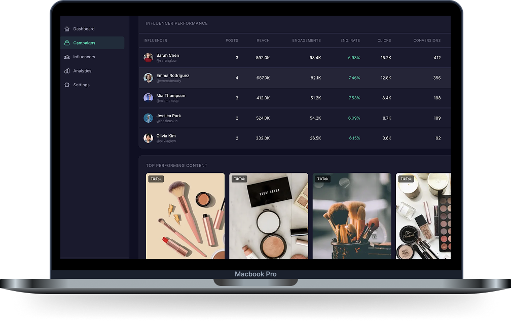 A powerful dashboard for brands to track campaign performance, monitor creator content, and measure ROI — all in real time.